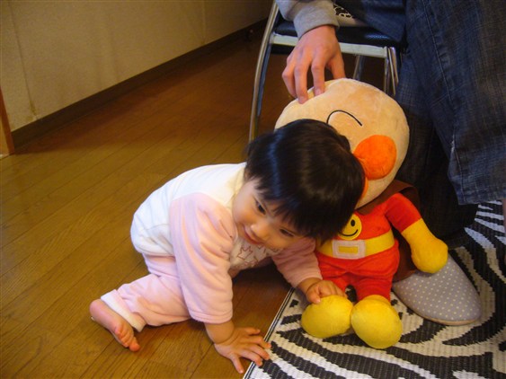 大きなアンパンマンのぬいぐるみのプレゼント。